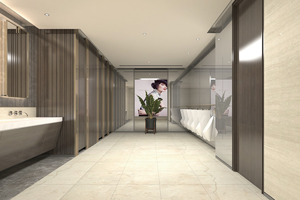 公共衛生間隔斷不僅僅起到了間隔單間的作用,材質、尺寸和距離的把控也在一定程度上影響了整體的裝飾美感,比較常見的隔斷材質有PVC板、鋼化玻璃、復合板、石材等